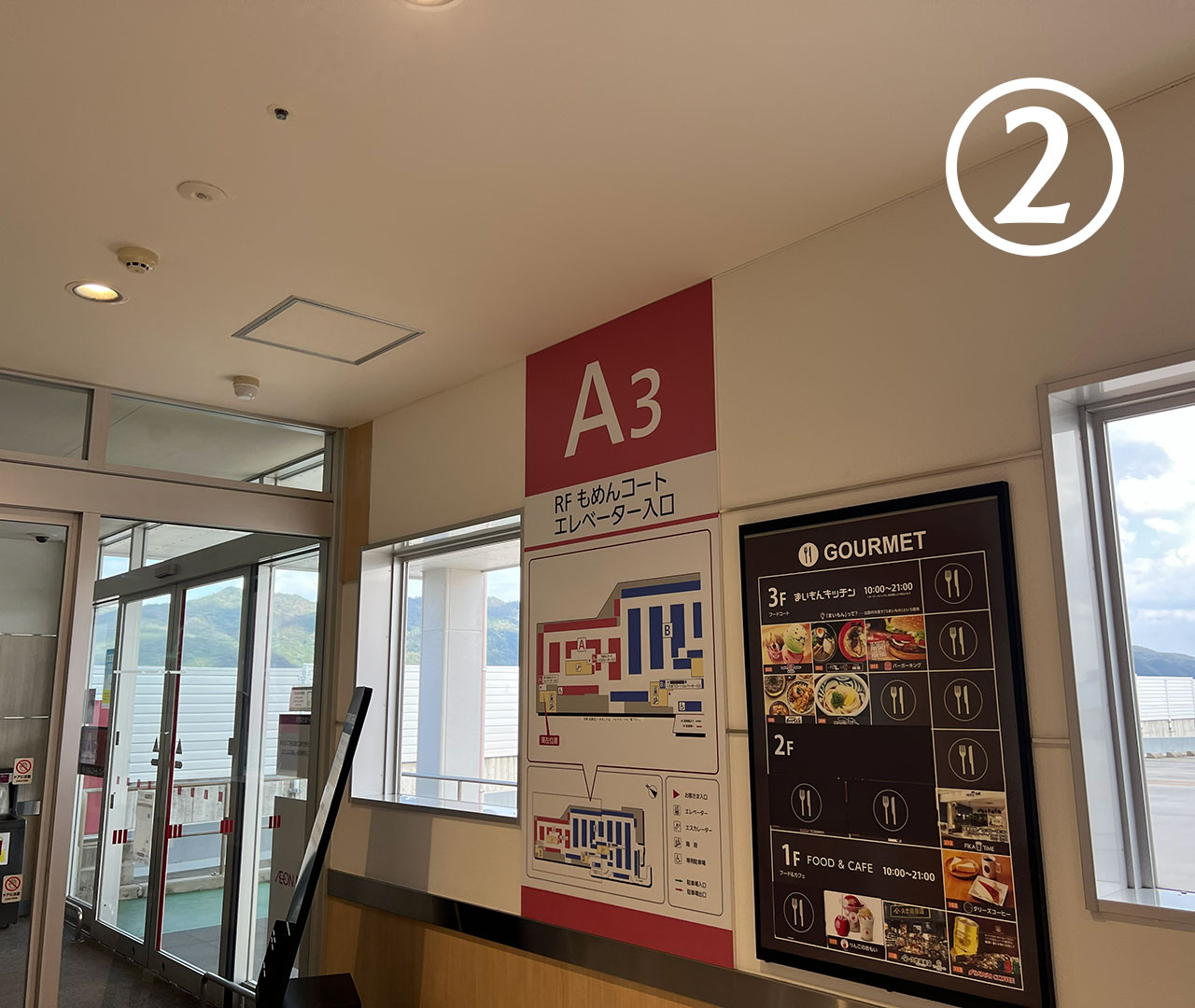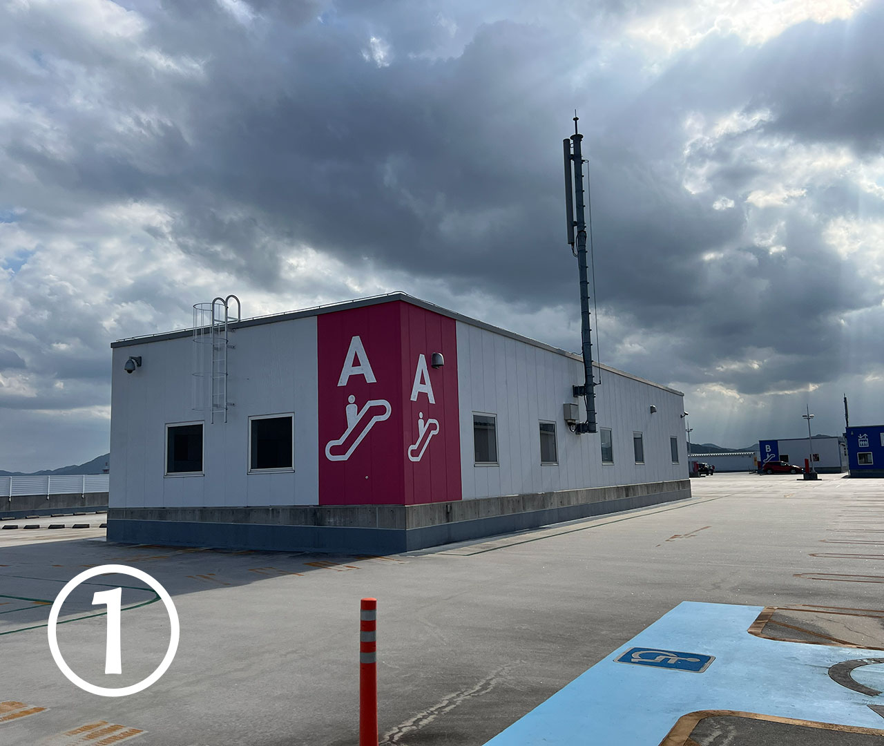 屋上駐車場からシャトルバス乗り場までの最短のルートをご紹介。