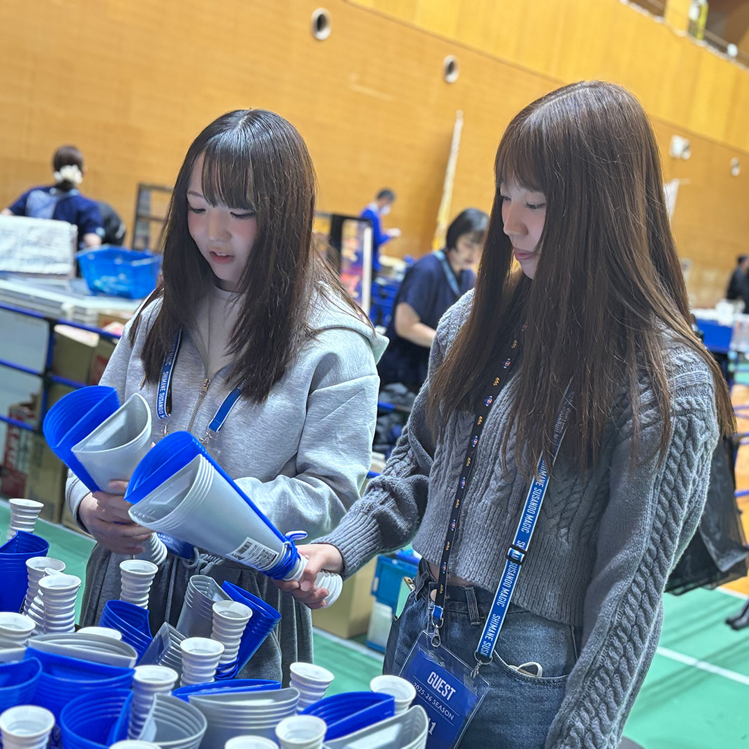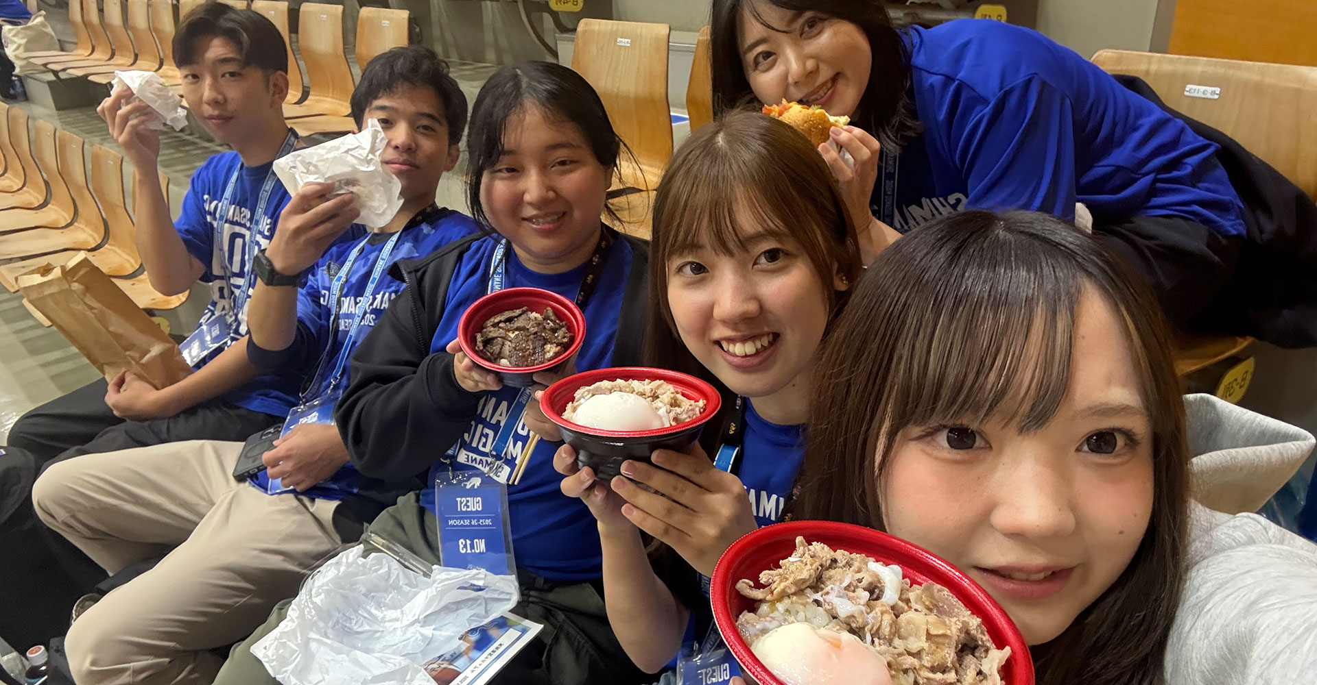 会場内で選手の様子を見ながら食べられるのもポイント!