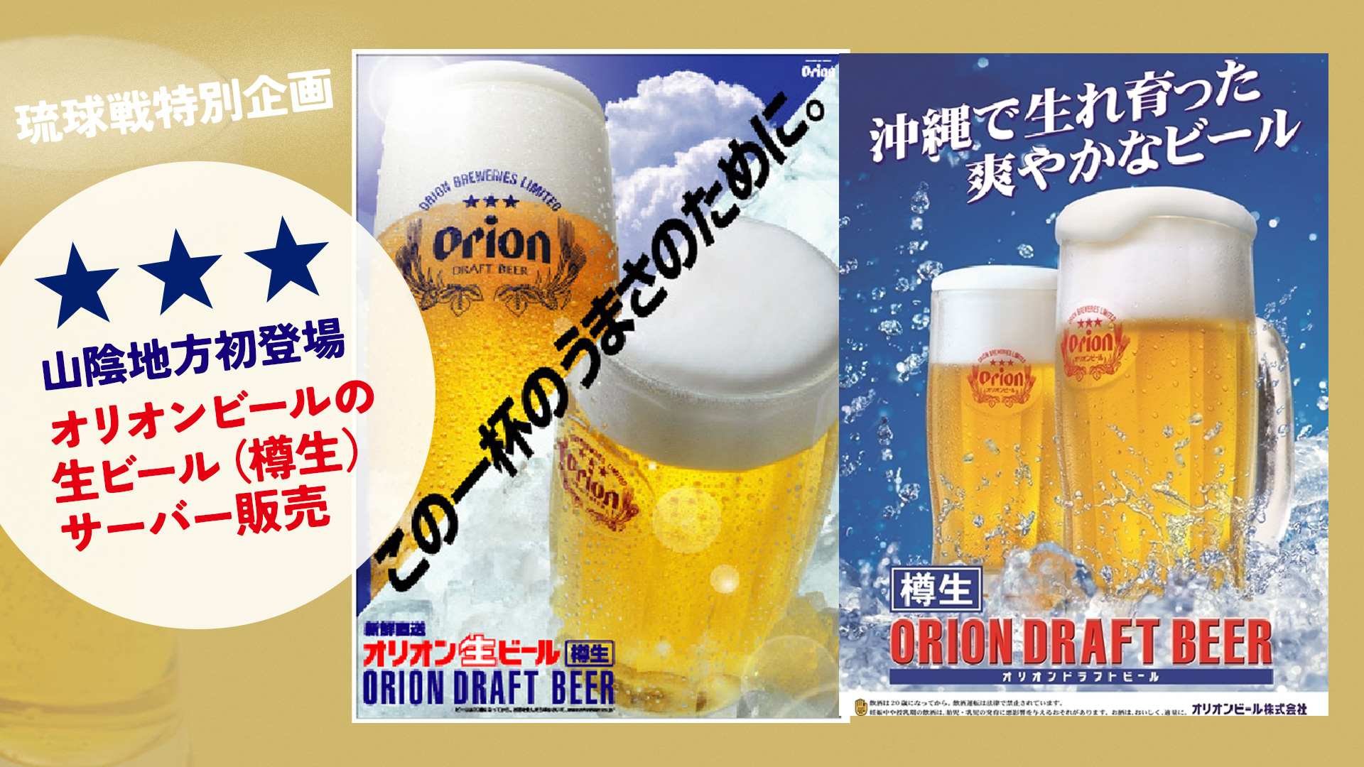 琉球戦を記念して、大根島醸造所にて沖縄のオリオンビールをサーバー販売します。オリオンビールの樽生ビール販売は『山陰地方初』!この機会をお見逃しなく!