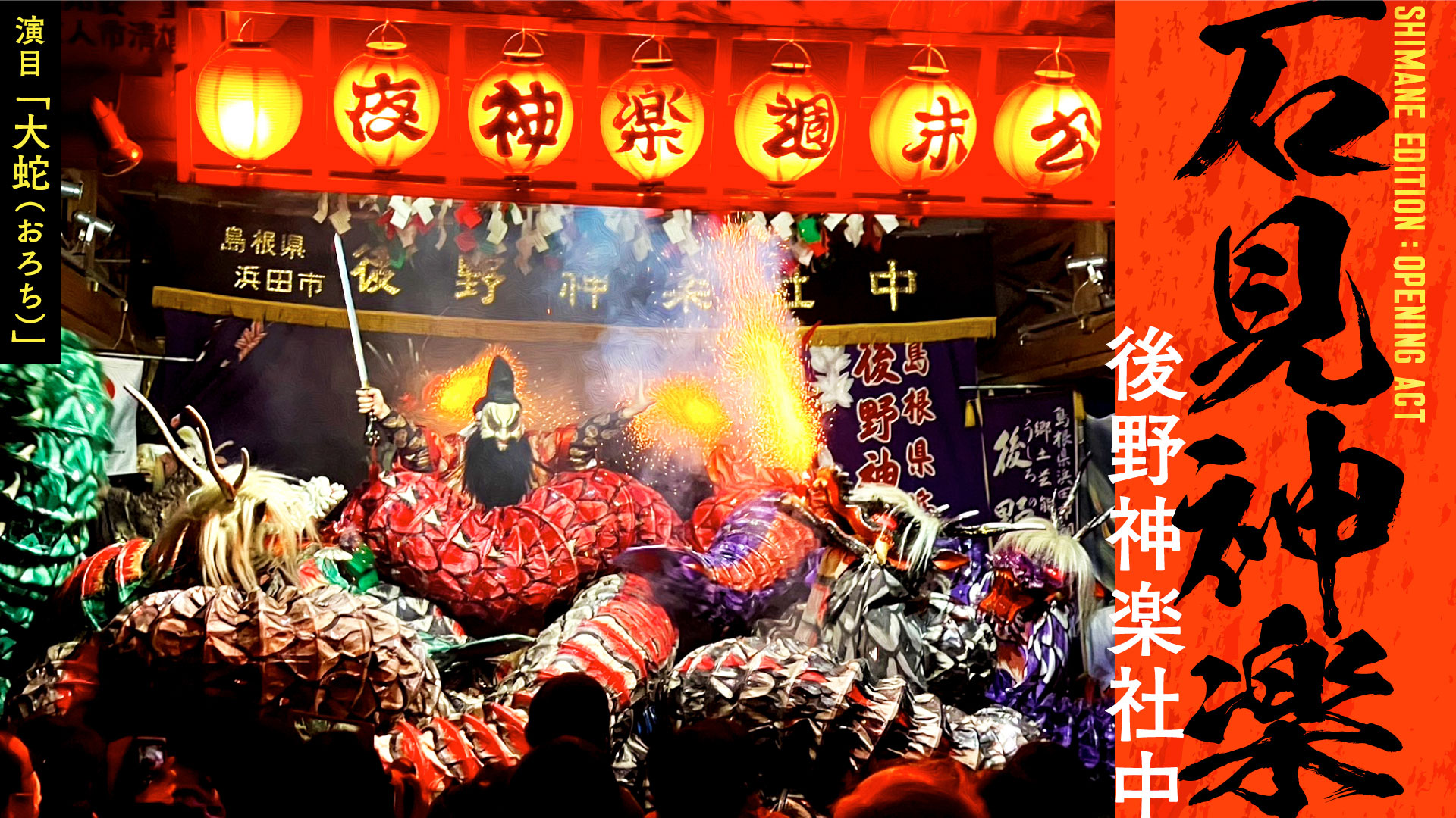 「SHIMANE EDITION」の一環として、島根が誇る伝統芸能・石見神楽(いわみかぐら)をオープニングアクトとして披露。出演は石見神楽の継承と発展に努める後野神楽社中。人気演目「大蛇(おろち)」をお楽しみください!