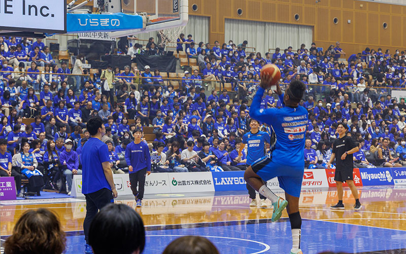 ホームアリーナとなる出雲市「カミアリーナ」周辺は、言わずと知れた観光地・出雲大社のおひざ元。それだけに週末のゲームは混雑することもしばしば。余裕を持った来場がベター。