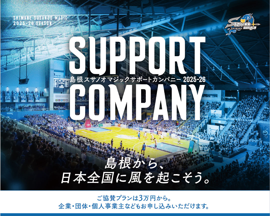 島根スサノオマジックでは、クラブの活動を応援してくださる「サポートカンパニー」を募集しています。