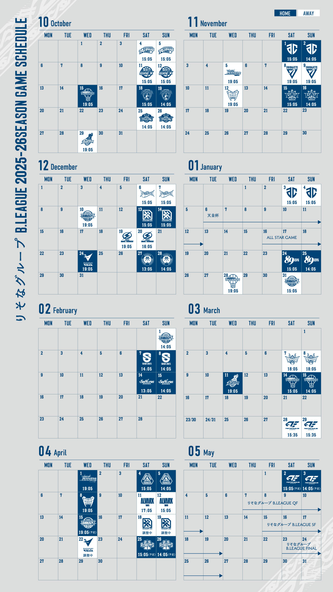 【お知らせ】りそなグループ B.LEAGUE 2025-26 SEASON ゲームスケジュールの決定について