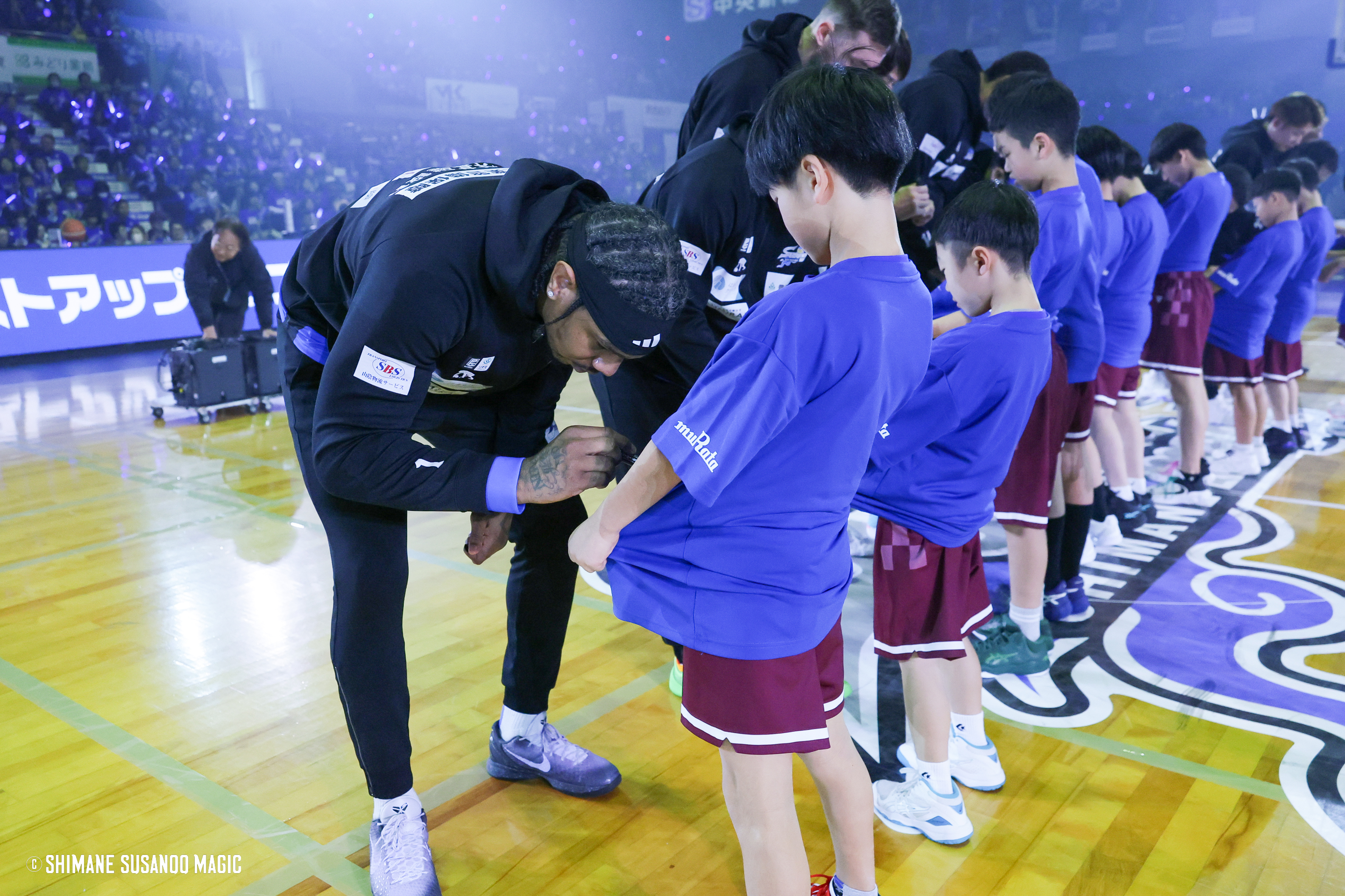 試合開始前の島根スサノオマジックの選手入場後、コート上で選手との記念撮影とその場で選手がサインを書き込んだオリジナルTシャツをプレゼントする貴重な機会です。