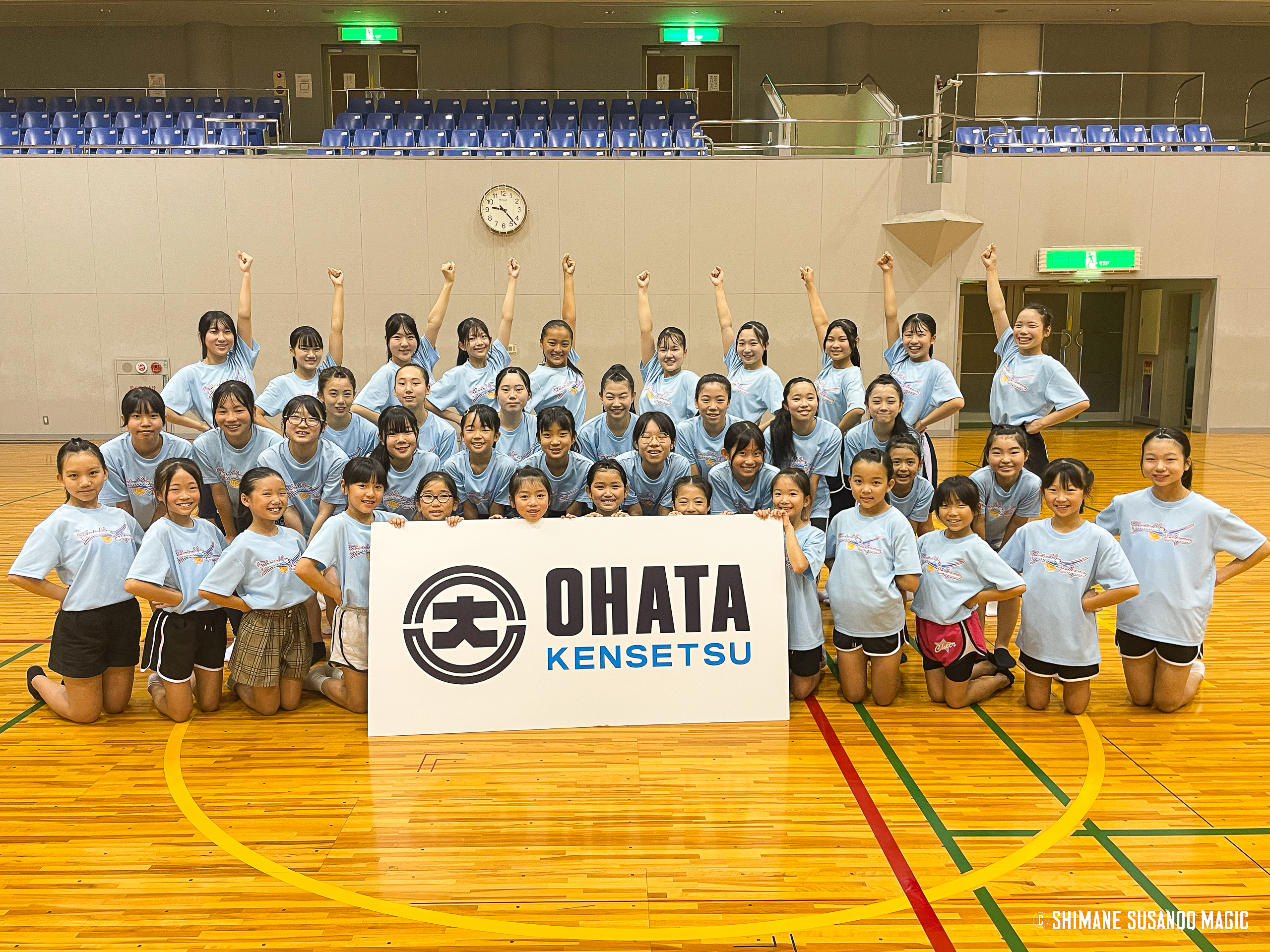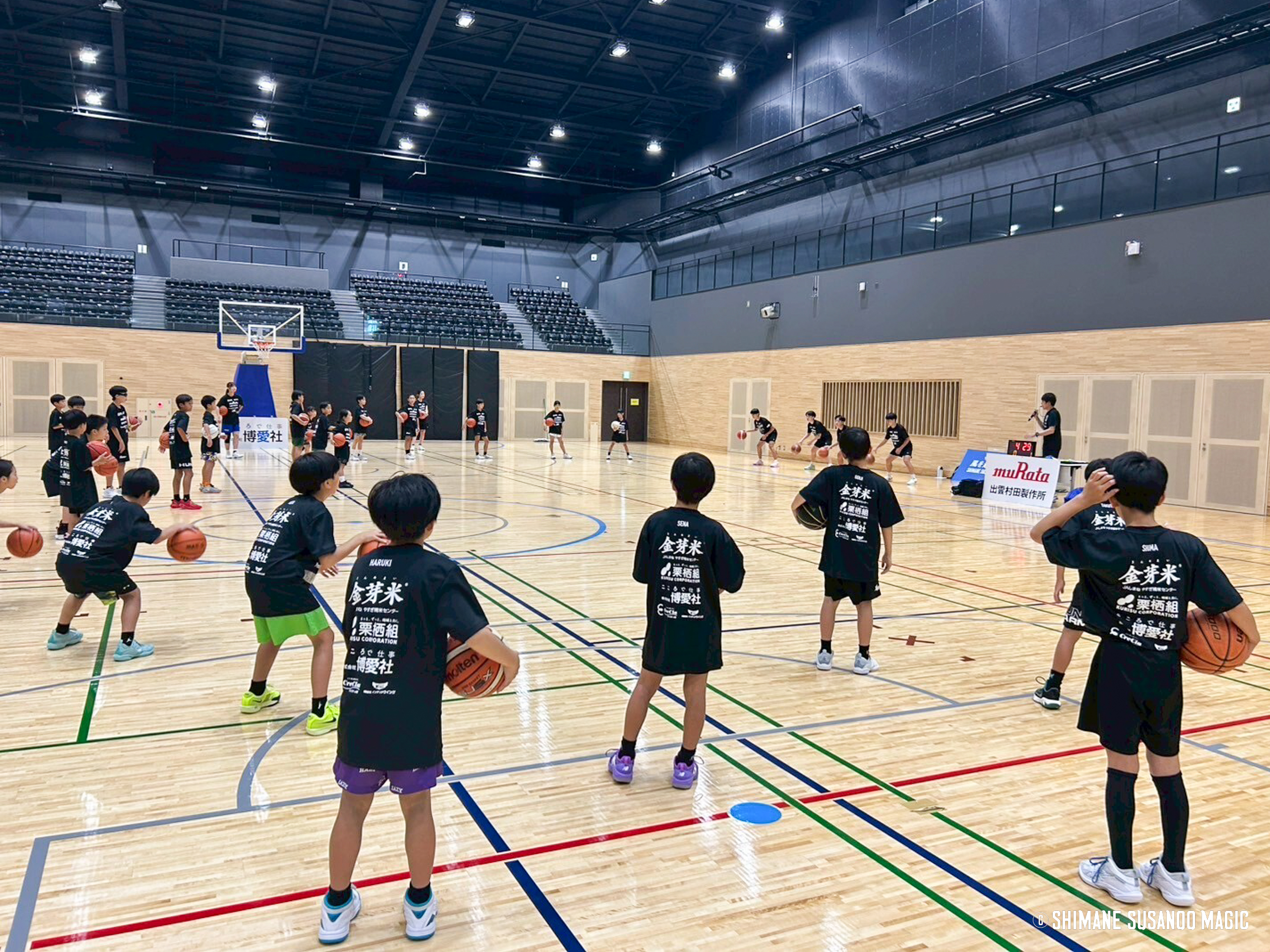 2025 年 7 ⽉から 10 ⽉にかけて、島根県内の複数の会場にて「SSMキャンプ 2025」を開催しました。 バスケットボールやチアダンスを対象としたこの一連のキャンプには延べ約 250 名が参加。島根スサノオマジックスクールスタッフらが講師となり指導を⾏いましたのでご報告致します。